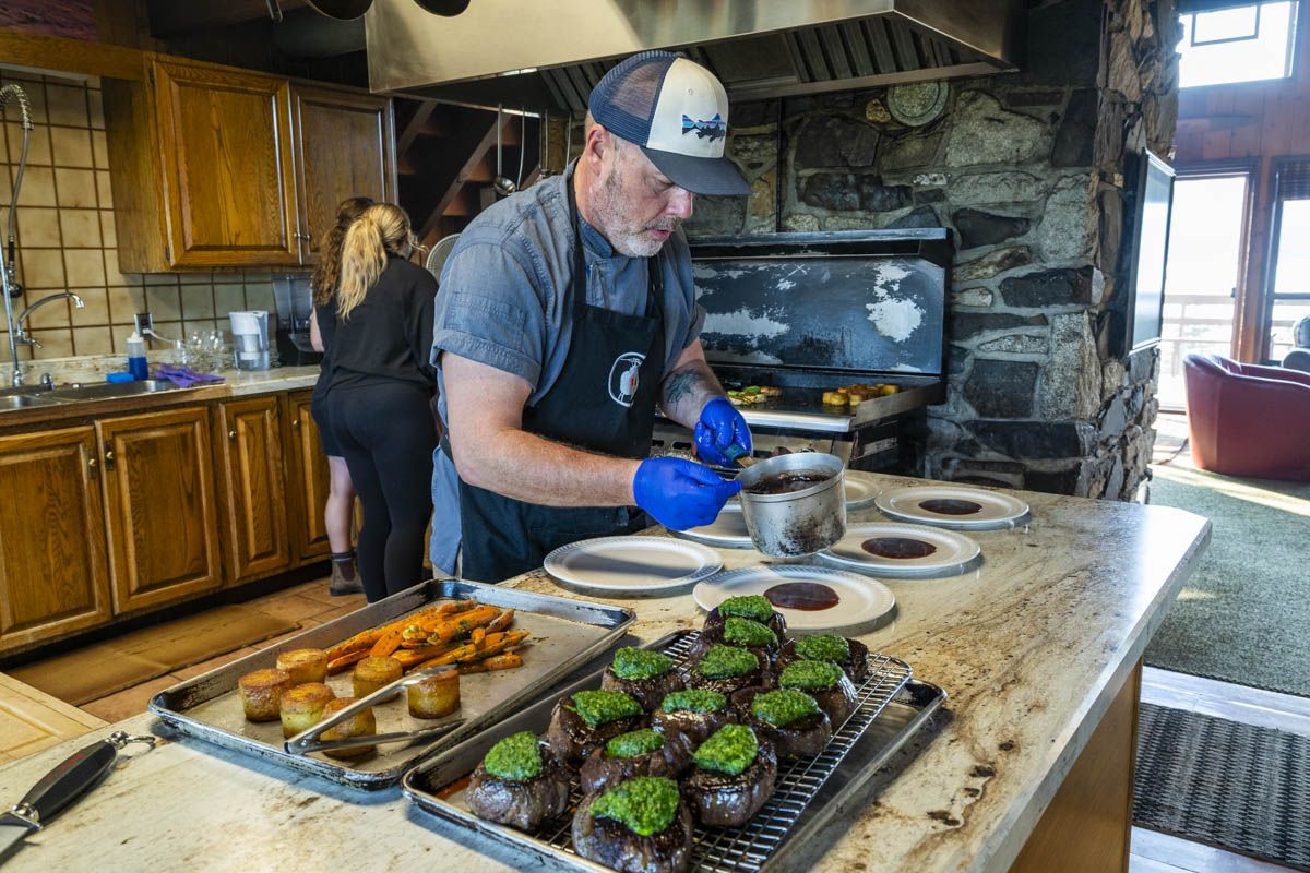 The dining room atmosphere is relaxed and sumptuous all at the same time. Meals are brought directly to your table while you relax and enjoy the panoramic views. Hearty delicious meals, specially prepared by the expert chef are presented daily with home baked breads, desserts, and the freshest of ingredients.