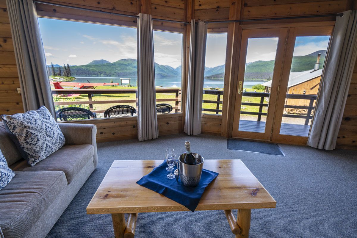 The lodge complex features four two-bedroom Justus Cedar chalets, an impressive main lodge with dining room, a separate lodge for recreating, and a lakeside sauna; all beautifully situated facing one of the most outstanding views that Mother Nature has to offer.