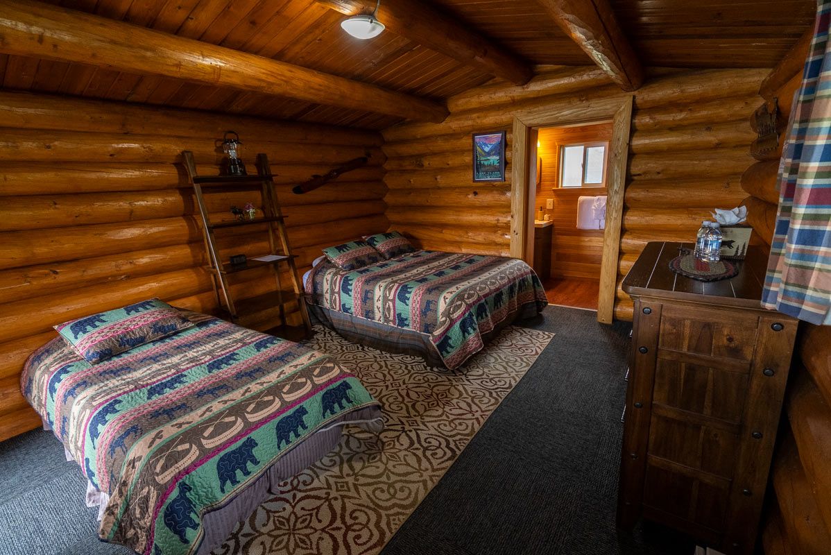 Redoubt Mountain Lodge accommodates 12 overnight guests in 6 private log cabins. Each cabin includes: two comfortable beds, propane heating, shower/toilet/sink & views of the lake & mountains. Lodge amenities are more than comfortable with cozy furnishings, fireplace, Internet connection & satellite TV. A screened-in gazeebo hot tub & wood fired sauna are also on the property offering breathtaking views of Crescent Lake, Chigmit Mountains & a beautiful hanging glacier.