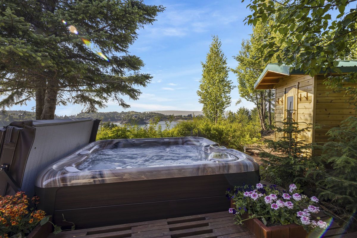Guests have access to an infrared sauna and hot tub overlooking the ocean.
